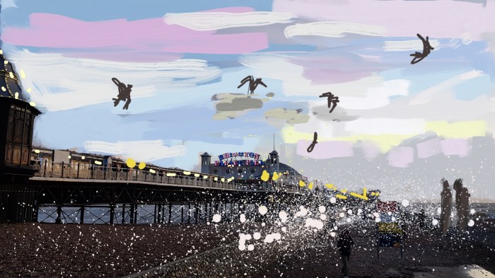 Arromanche Remembrance | Digital Art | 210 x 297mm | £150Lucy and Mr. Tumnus | Monoprint and Mixed Media | 420 x 297mm | £395Brick Lane High Street, 1998 | Mixed Media | 420 x 297mm | Original sold, available as a print, please askCamden Lock, 1998 | Monoprint | 410 x 560mm | £425.00Peak District Adventure | Digital Art | 297 x 210mm | £150Putsborough Sands | Digital Art | 297 x 210mm | £150Brick Lane Market | Etching and Watercolour | 246 x 212mm | Original sold, available as a print